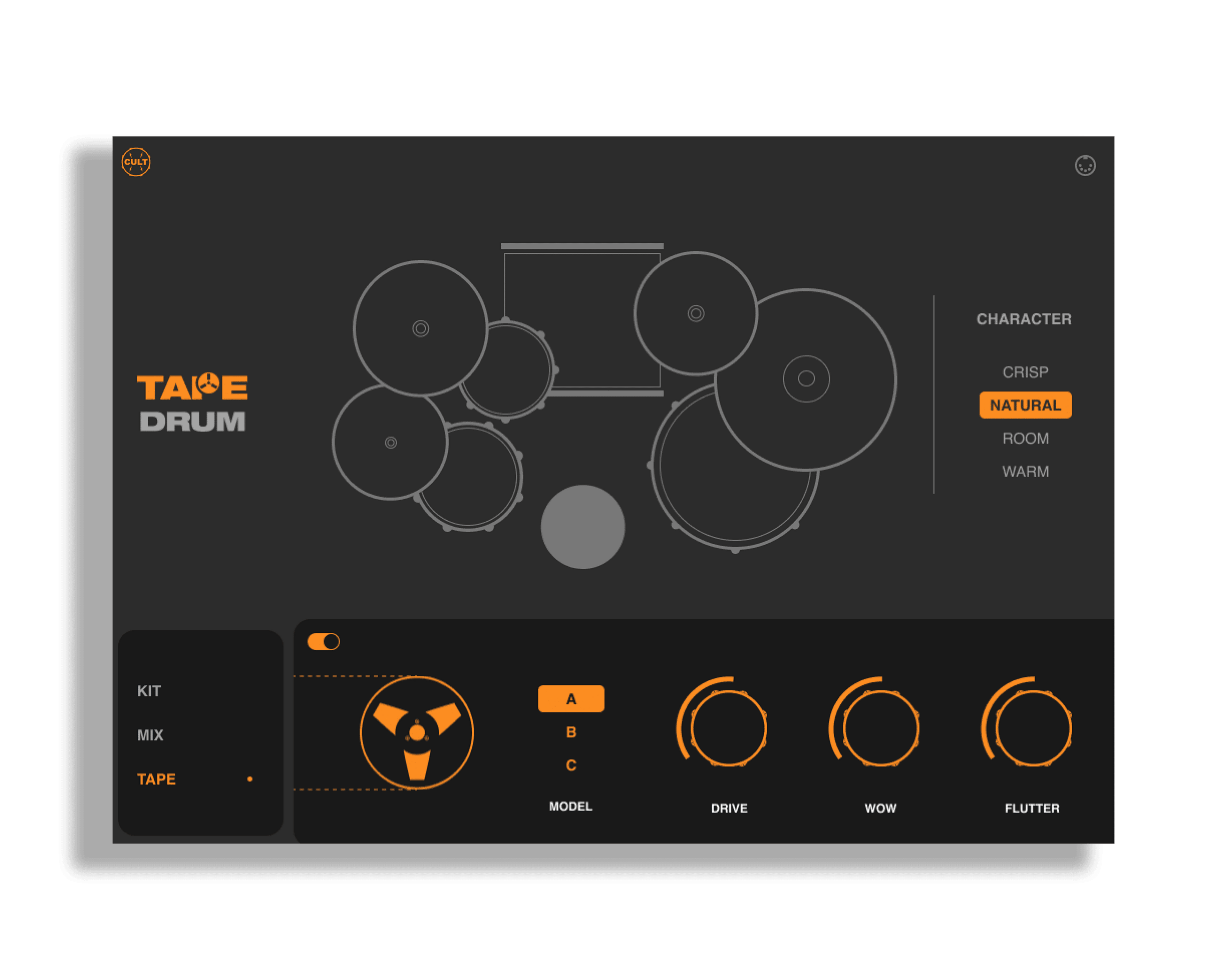 "TAPE DRUM has some great sounds and dynamic range - earthy and delicate when played soft but can get really punchy when played hard. Room, tape and drive settings allow you to dial in different sounds as well as assembling your own mixture of kit. Well done … loving it!"